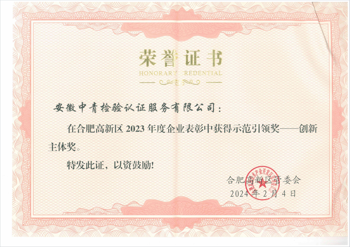 • 祝賀!中青認(rèn)證 評選為合肥市2024年(2023年度)勞動保